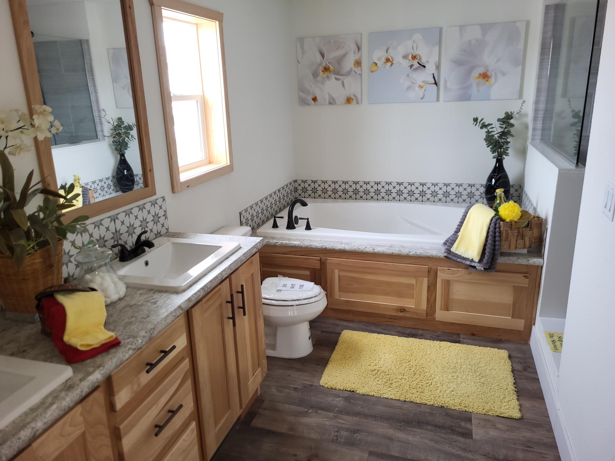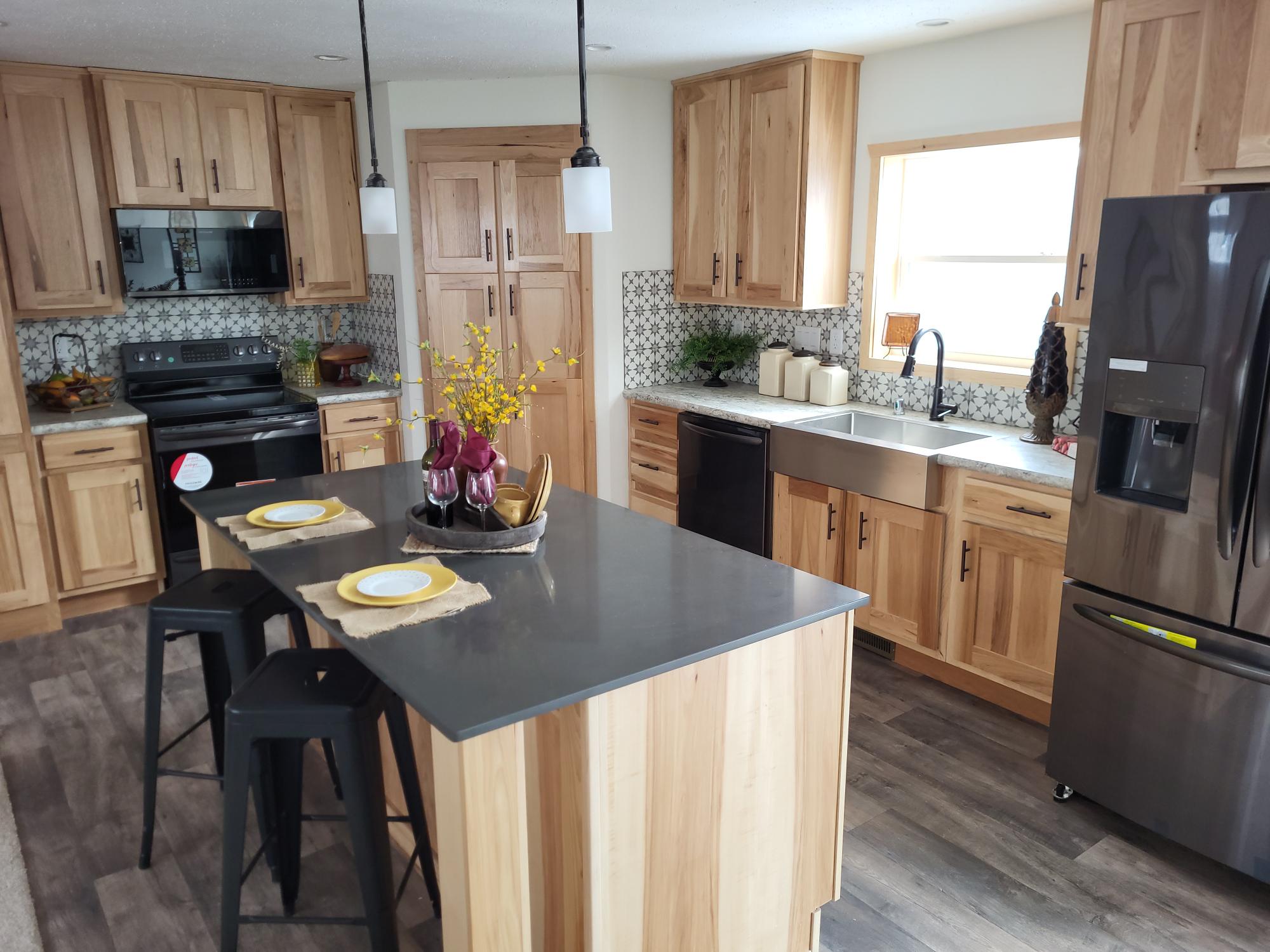 This Schult modular home is located at Factory Home Center - Redwood Falls. This 3-bedroom, 2-bath offers hickory cabinets and a wide open entertaining space. The kitchen as a large island, upgraded appliances and a huge hidden pantry option. The master bathroom is shown with a soaker tub and large ceramic shower. This home also has a spacious utility room to suit all your needs.